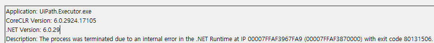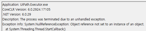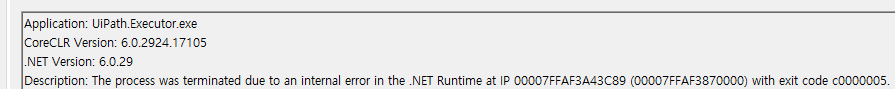 해당 오류는 UiPath에서 나는 오류가 아니었다. 무언가 Copy 작용이 일어나면서, UiPath의 GC나 혹은 다른 메모리 처리자가 Window 영역을 건드리게 되면서 Window가 강제로 UiPath를 종료시키는 모양새다.