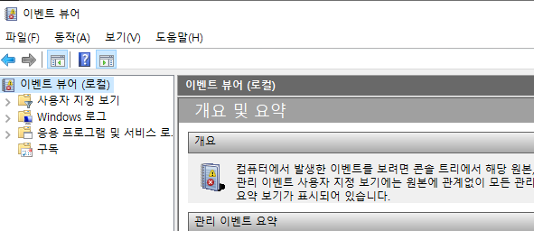 윈도우 메시지 창은 [실행(Win + R)]을 열고 [eventvwr.msc]를 열면 된다.