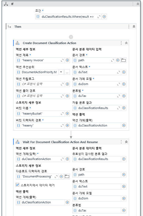 이 액티비티는 별 거 없다. 위 Create에서 Action Center로 올린 뒤 올린 문서들이 전부 처리될 때까지 대기하는 역할이다.