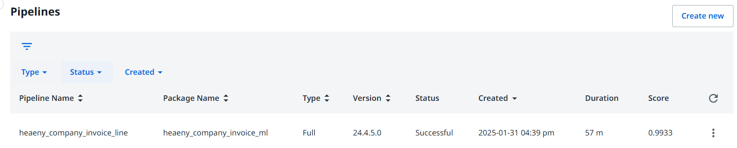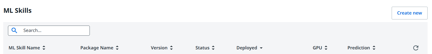 역시 제작 방법은 크게 다르진 않다. 우측 상단에 [Create new] 버튼을 누르고 ML Skill 생성 창으로 진입한다.