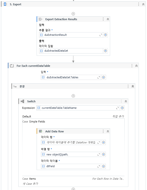 Parellel을 활용해 문서를 병행 처리하려면, 본 4번 5번의 Extract, Export 과정을 하기전 변수의 Scope 영역을 제대로 잡아야한다.