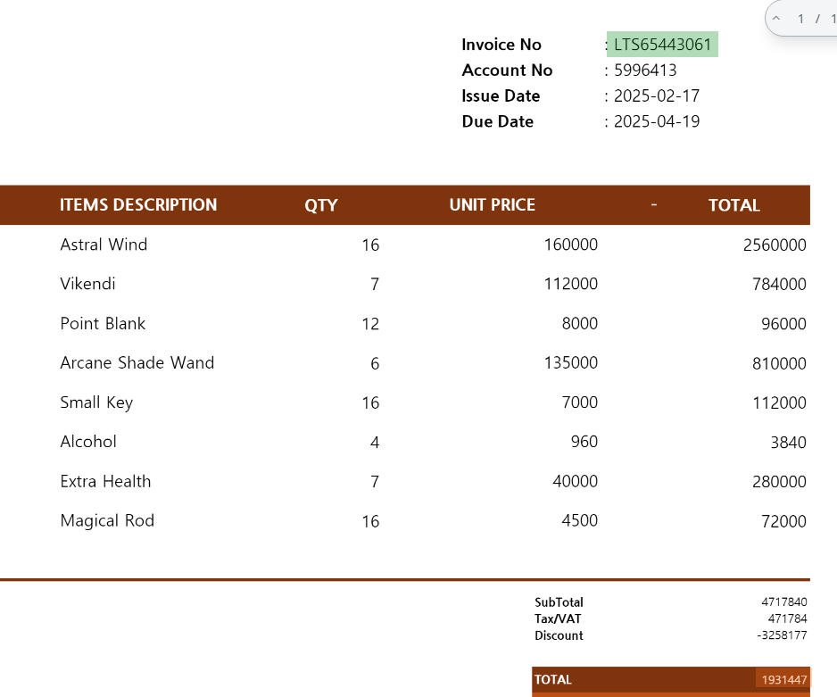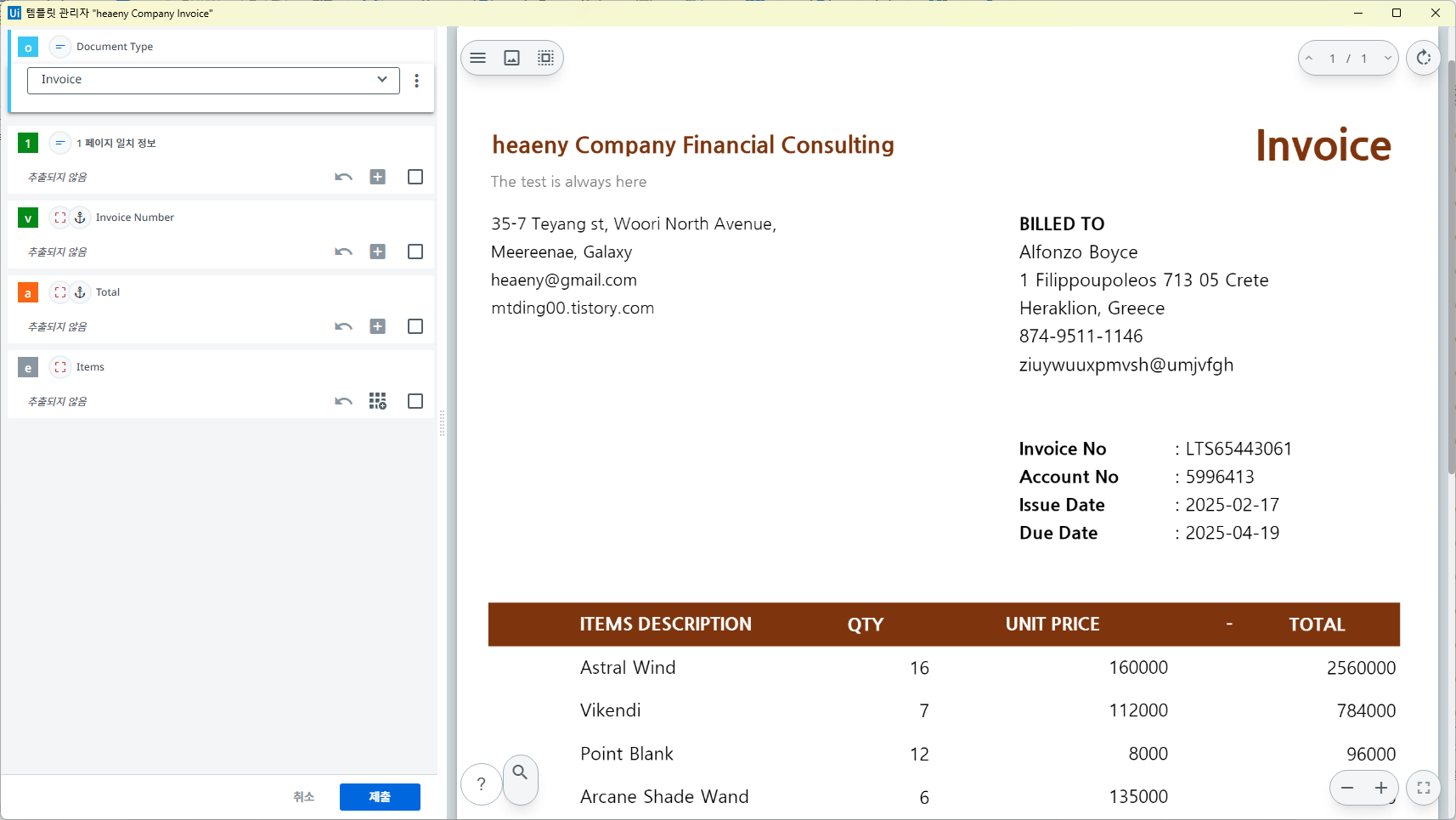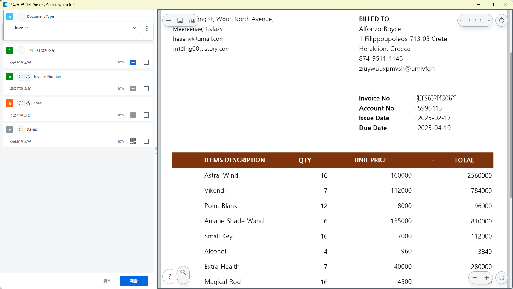 진짜 정규 표현식을 기반으로 텍스트를 추출하는 것이며, 위 Form 과 마찬가지로 별도의 학습은 없다. 따라서 오류 발생이 농후하다. 여기에서는 Invoice Number 한 항목만 확인하고 넘어가겠다.