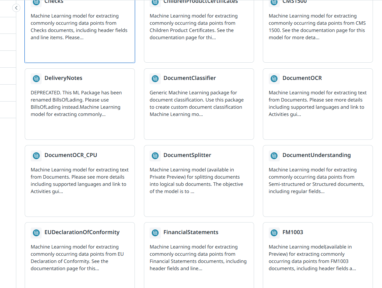 해당 버튼을 누르면 다시 비슷한 창이 뜨는데, 난 제일 첫번째의 [UiPath Document Understanding] 택하겠다.