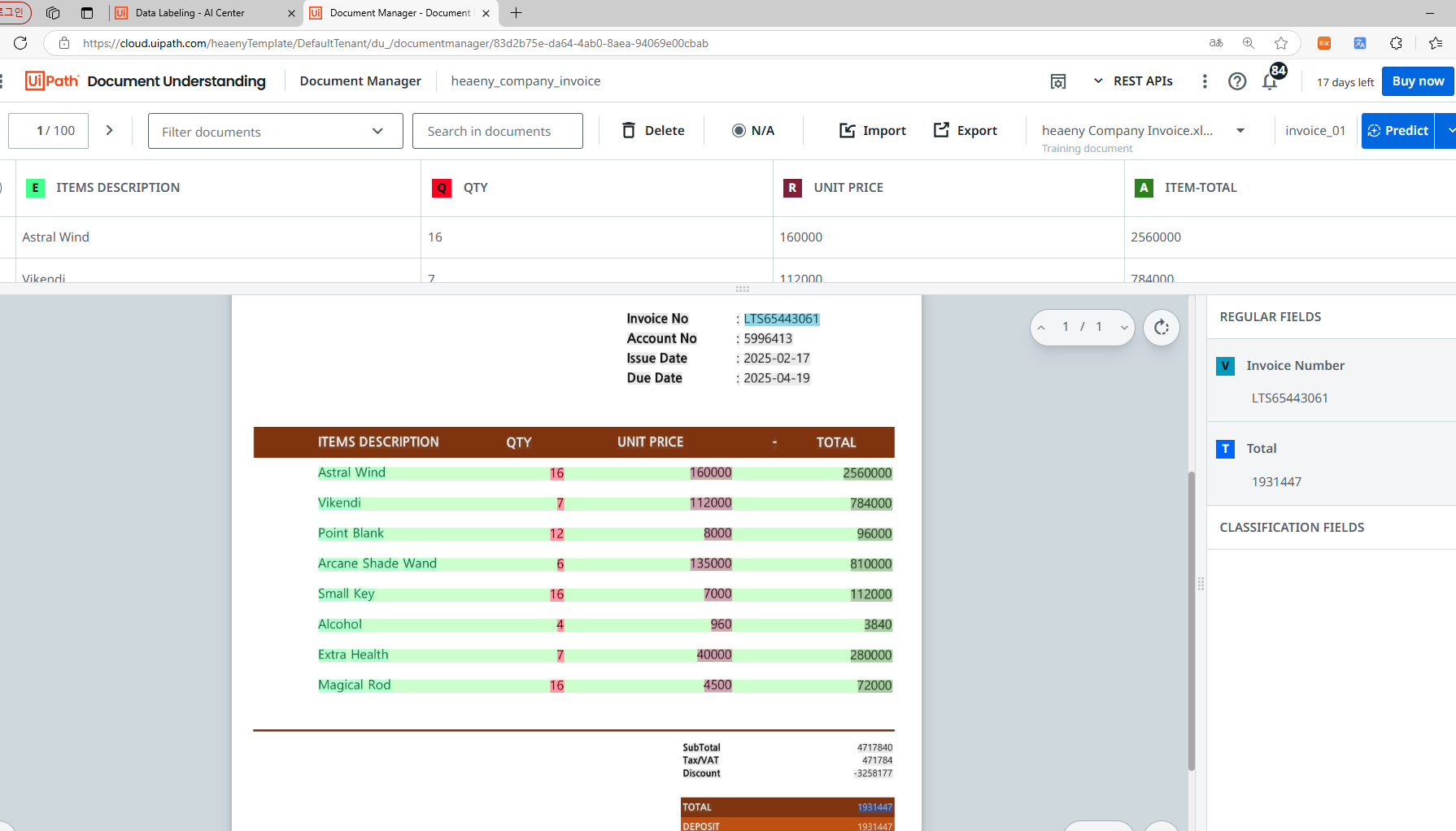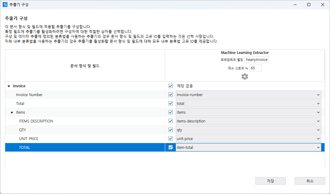 최종적으로 Invoice No과 Total 쪽에 라벨이 생겨 인식된다.