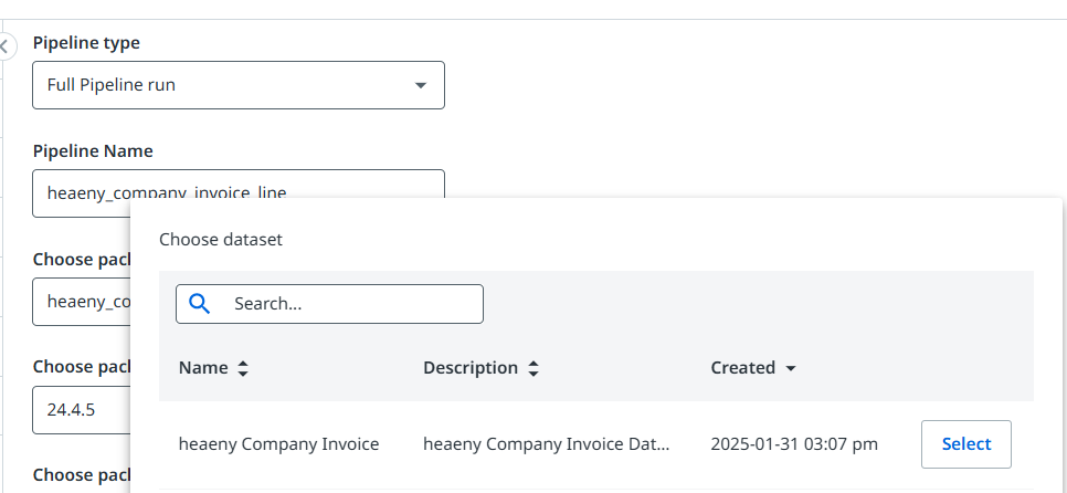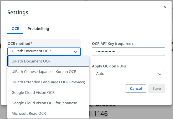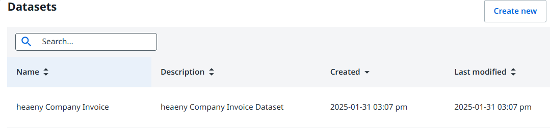 | UiPath Document Understanding 선택 | 라벨링의 이름 및 데이터 셋 선택 |
