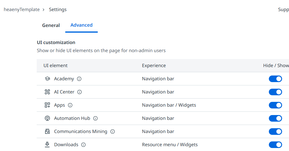 | AI Center 확인 | 없을 경우 Setting의 AI Center 활성화 확 |