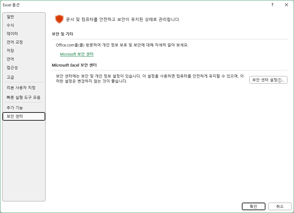 - 액셀 환경 설정 확인