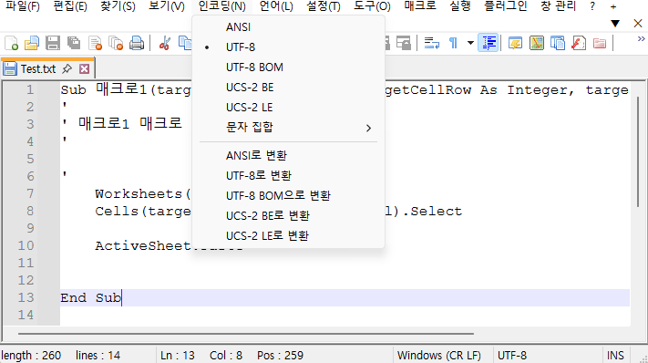 2. 매크로 파일 인코딩 확인