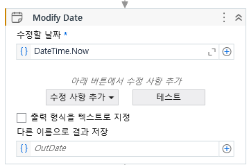 위와 같은 모습으로 계산된 산출 날짜를 바로 지정된 형식으로 치환한다. 위 부속 액티비티 없이 문자열 치환만 해도 작동하는데, 이러면 굳이 Assign 불러와서 DateTime.ToString 식으로 줄코딩 할 필요가 줄어든다. >> 위에 굳이 날짜 계산 처리가 없이 치환하는 것만 한눈에 파악해도 유용할 액티비티가 될 것 같다. 이 점은 꽤 유용해서 큰 화가 없다면 많이 애용할 것 같다.