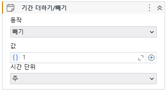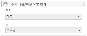 속성 창에서는 번역이 안되어 쉽게 이해할 수 있었다. “지난 1일”은 “LastDay”를 뜻한다. 즉, 주에 LastDay를 지정하면 해당 날짜가 속한 주의 토요일 날짜를 가져다 준다.